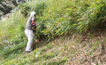 静岡県の茶栽培では、秋から冬に掛けて、茶園の周辺にある茶草場の草を刈って茶園の畝間に敷く作業が行われています。